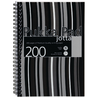 This handy Pukka Jotta notebook contains 200 pages of quality 80gsm paper, which is feint ruled for neat note-taking. The durable notebook has perforated pages for easy removal, polypropylene covers and a wire binding, allowing it to lie flat for easy note-taking. This pack contains 3 black striped A5 notebooks.
